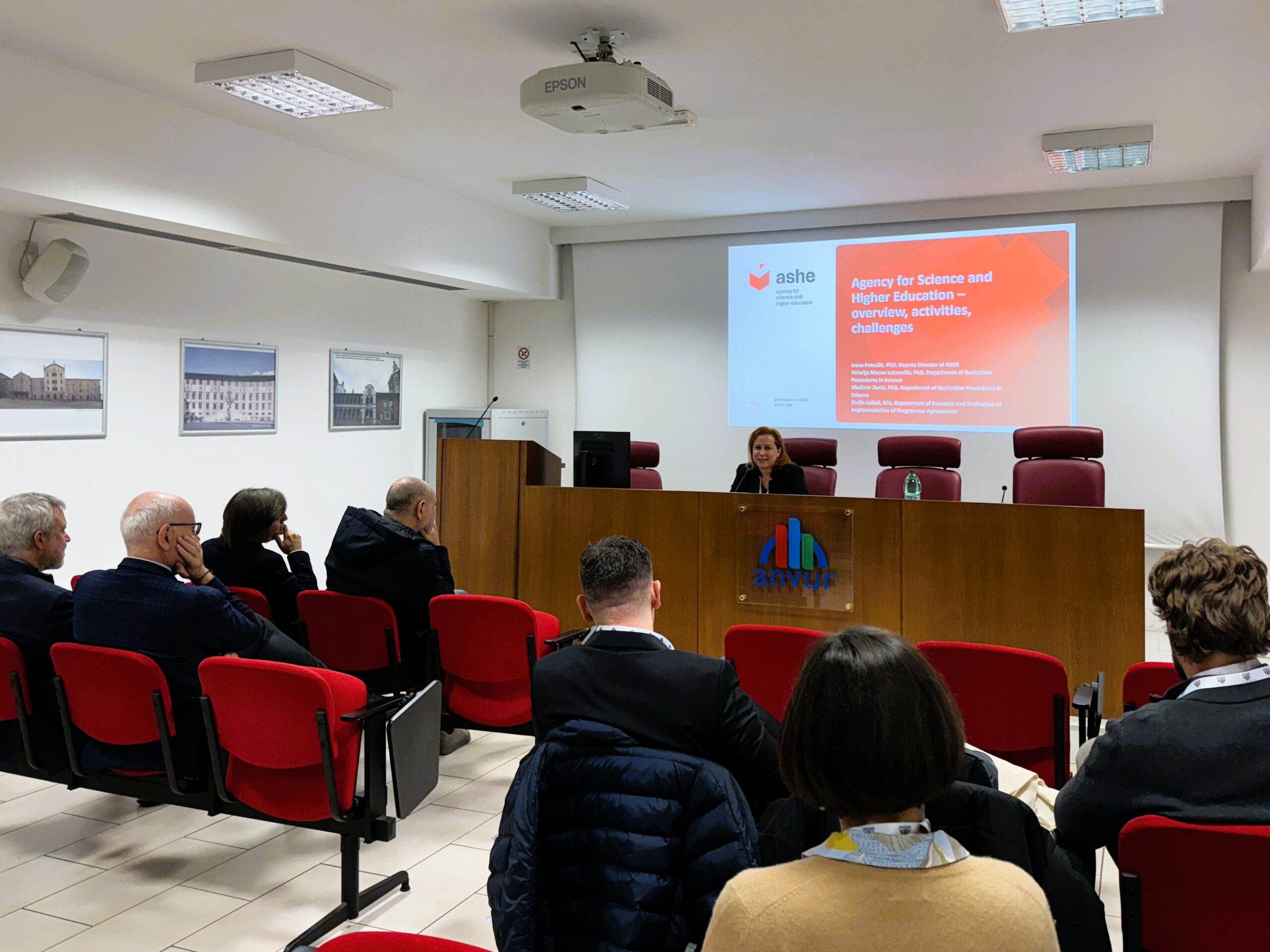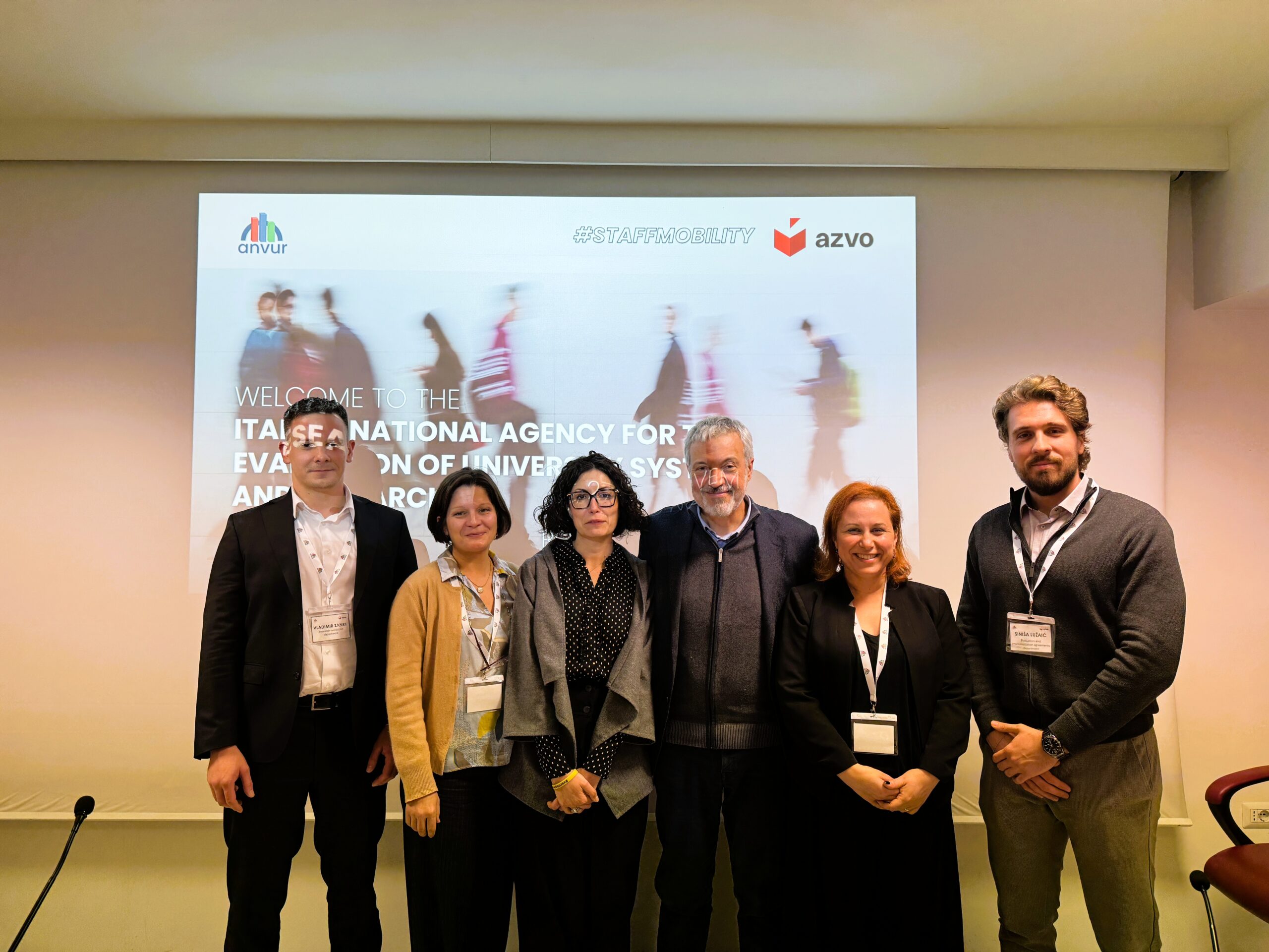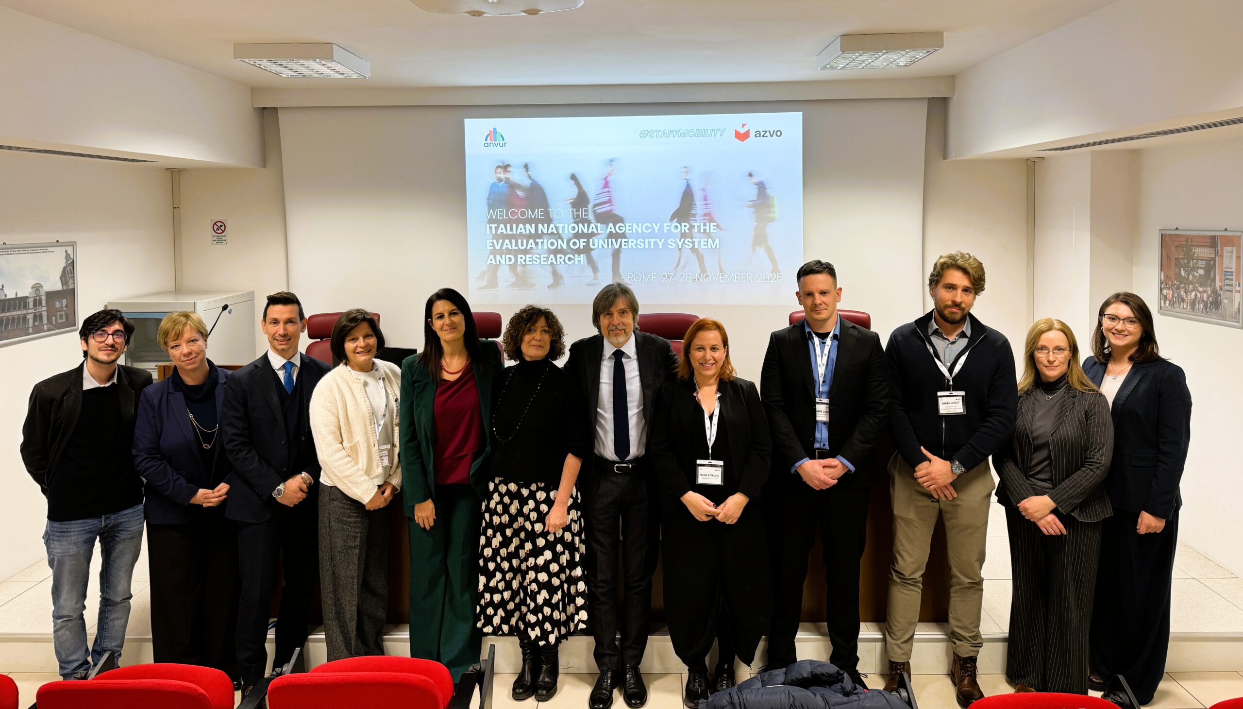 Djelatnici Agencije za znanost i visoko obrazovanje (AZVO) posjetili su 27. i 28. studenog 2025. godine talijansku nacionalnu agenciju ANVUR u Rimu (Agenzia nazionale di valutazione del sistema universitario e della ricerca).