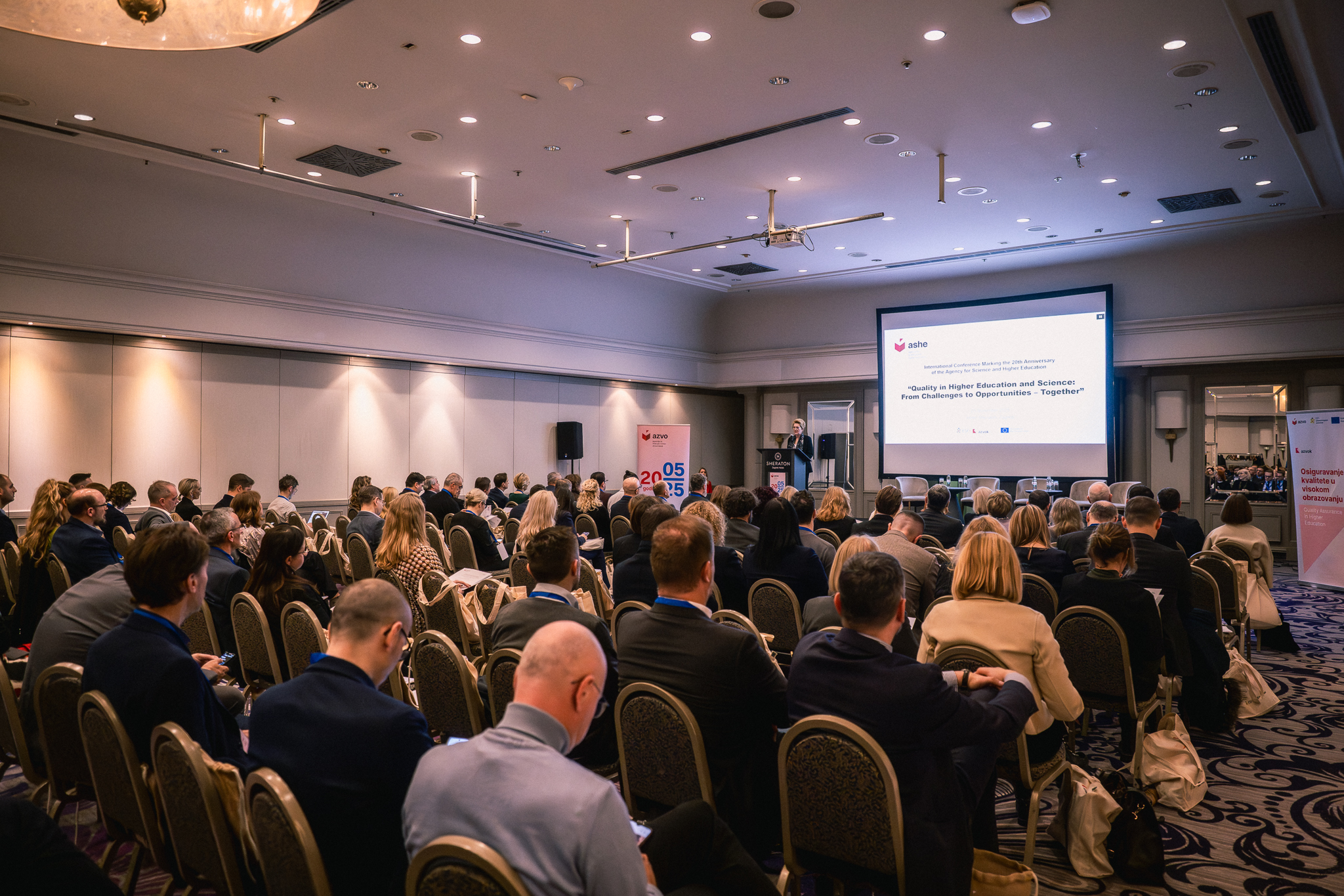 Međunarodna konferencija „Kvaliteta u visokom obrazovanju i znanosti: od izazova do prilika – zajedno“, kojom je Agencija za znanost i visoko obrazovanje obilježila 20 godina kontinuiranog djelovanja u području osiguravanja kvalitete visokog obrazovanja i znanosti u Republici Hrvatskoj, održana je 25. studenoga 2025. godine u Hotelu Sheraton u Zagrebu.