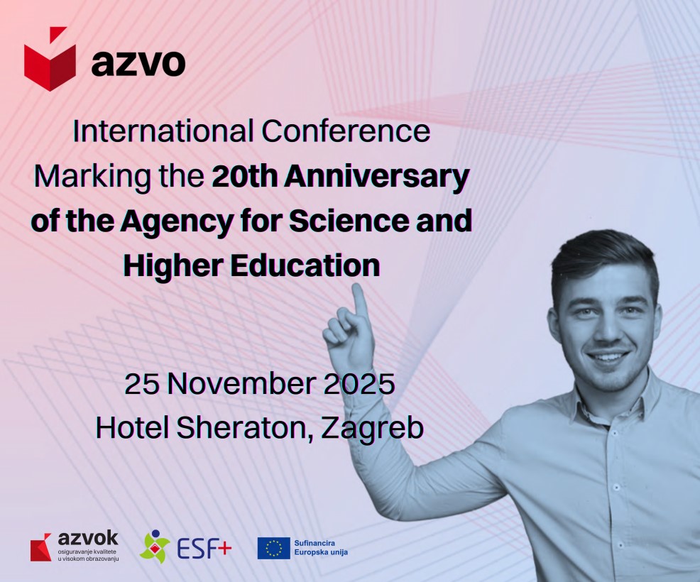 The Agency for Science and Higher Education (ASHE) is celebrating its twentieth anniversary this year, and on that occasion it is organizing an international conference entitled “Quality in Higher Education and Science: From Challenges to Opportunities – Together,” which will be held on Tuesday, 25 November 2025, at the Sheraton Hotel in Zagreb.